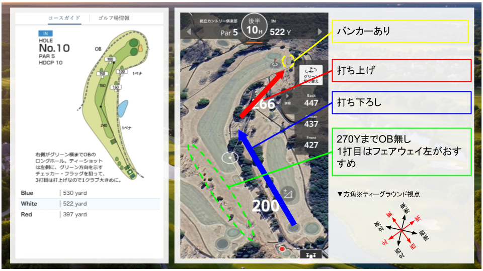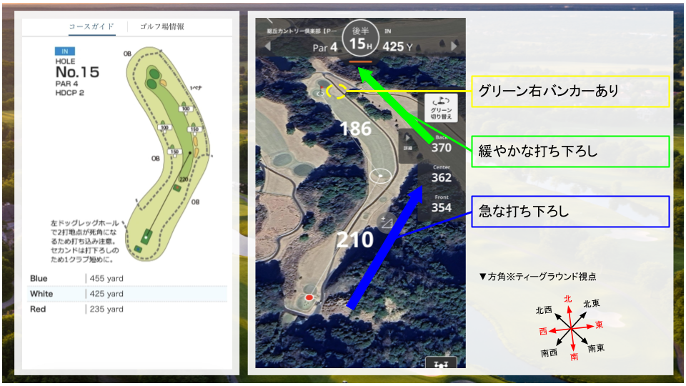 ラウンド前にコースの特徴を覚える事で、ぶっつけ本番で考える機会が減り、余裕を持ったプレーにつながると思います。