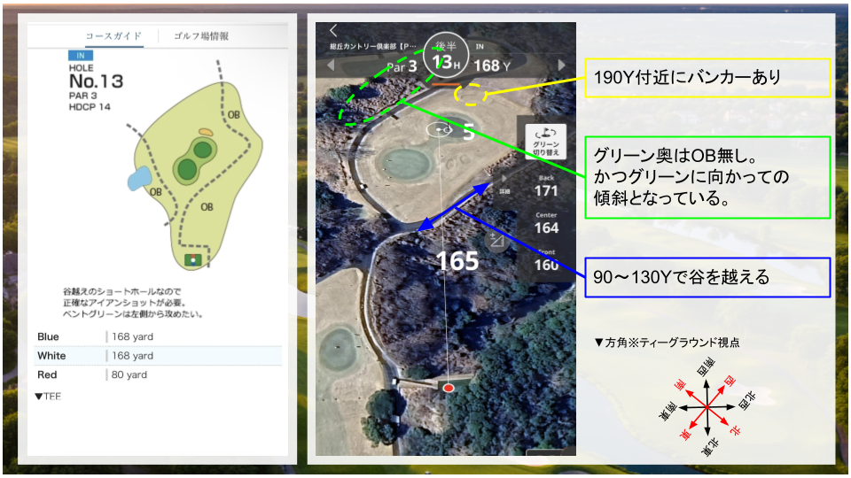 • その他:谷越えのティーショット。総距離が短いので谷さえ越えらればチャンス。