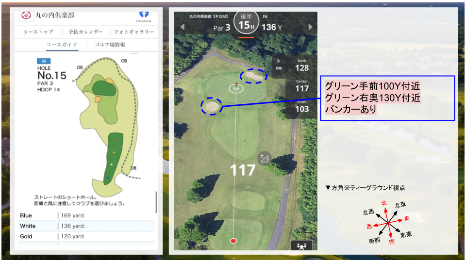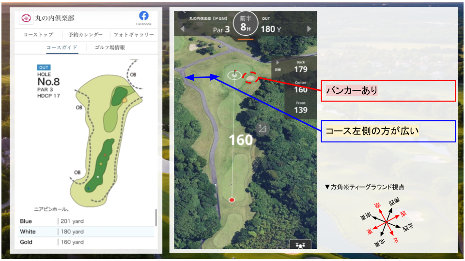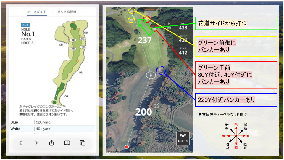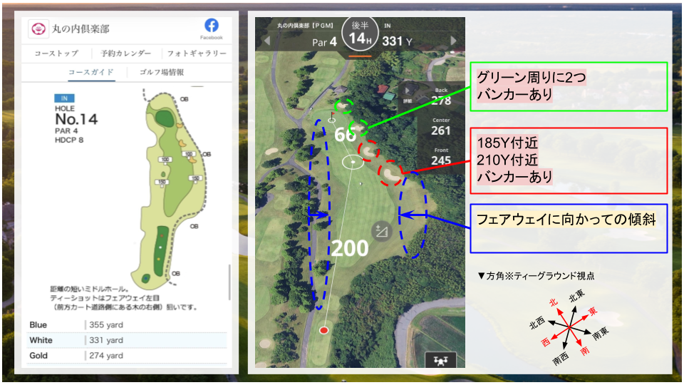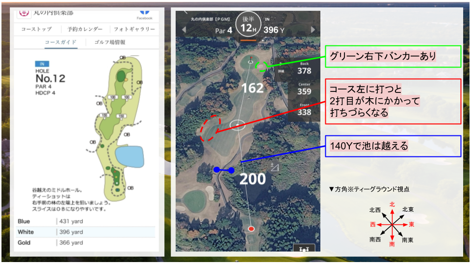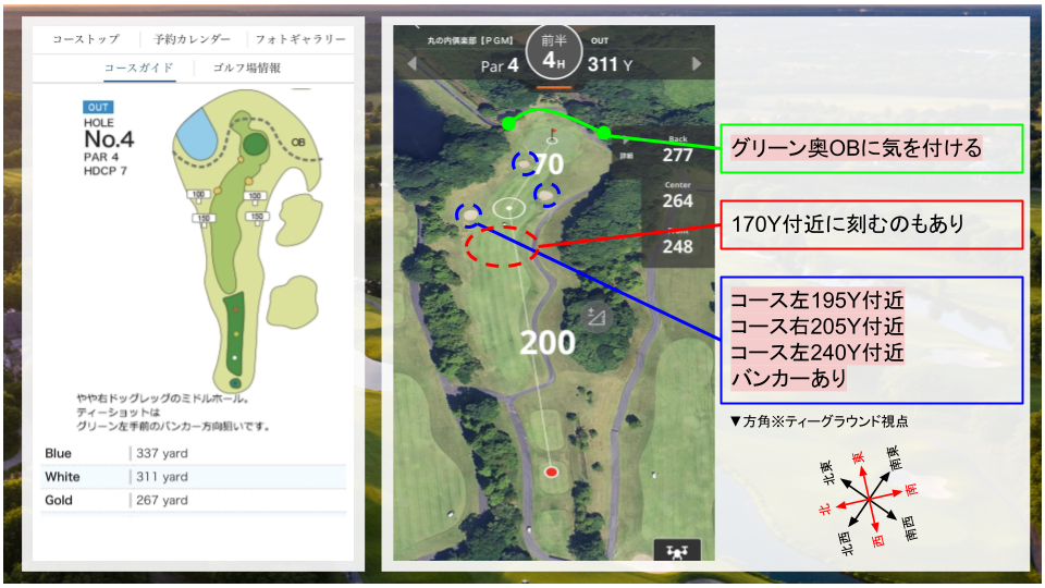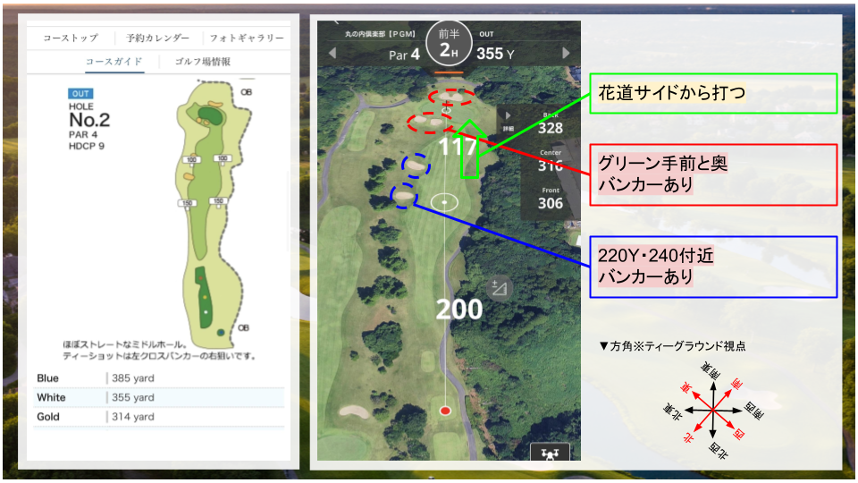 • その他:右ドッグレッグのコース。二打目は打ち上げになるので、距離感に注意。