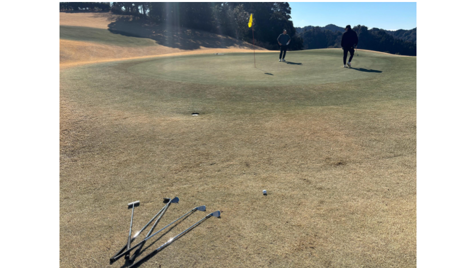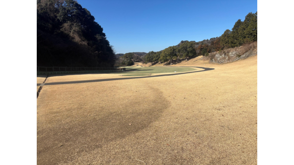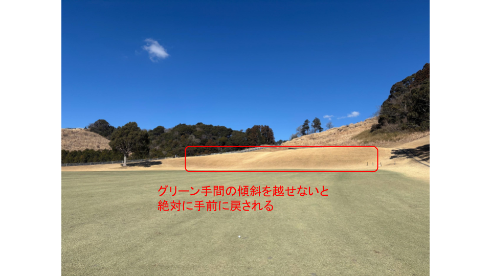 5打目は引っ張り系の球で、グリーン左側に。坂を越えることが目的だったので、OK。