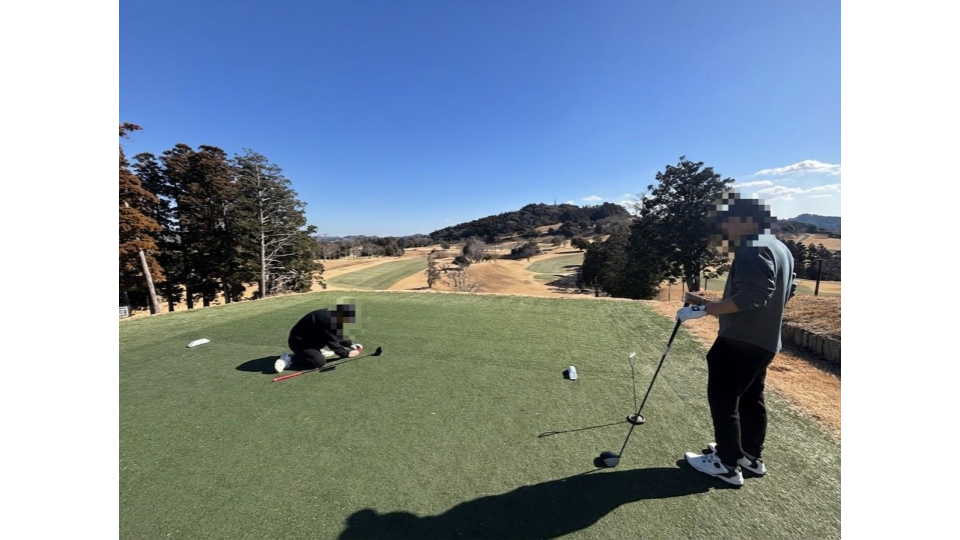 1打目は左に打ち出しすぎて、ティーグラウンド左に生えている木の上にかすりながら飛んで行き、傾斜を使って飛距離は240Yと、普段のプラス40Yほど飛んでいた。